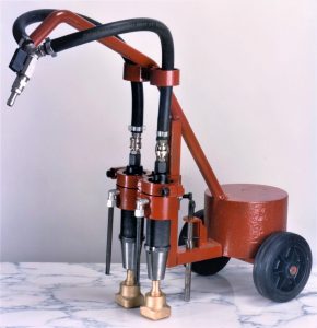 Bocciardatrice tipo “Rosso” per due martelli tipo “T”, senza martelli, completa di gomma.